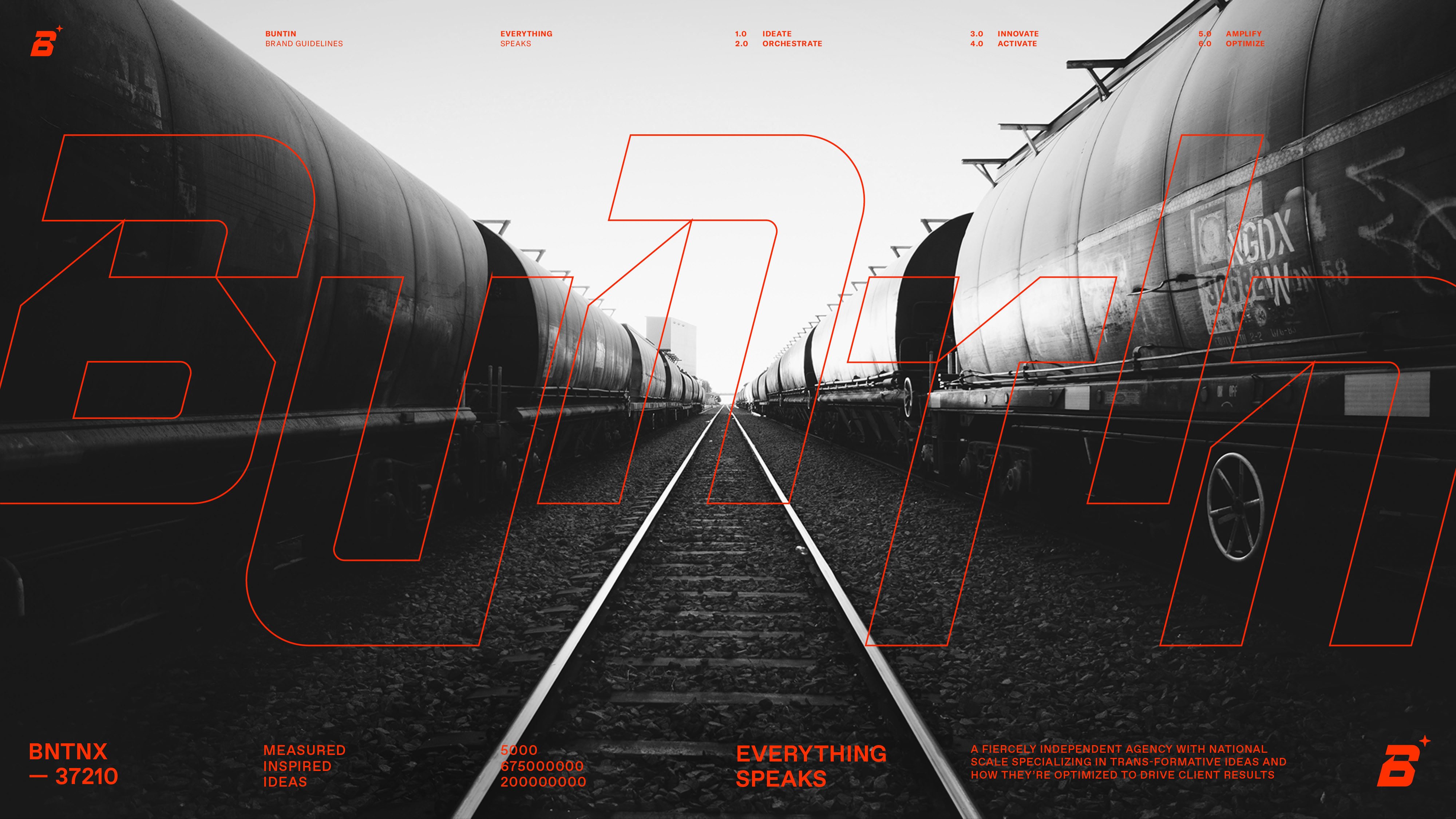 We reimagined the identity of TN based independent agency Buntin, transforming them from a steam train into a modern high speed railway. Now their branding speaks as clearly as their work.