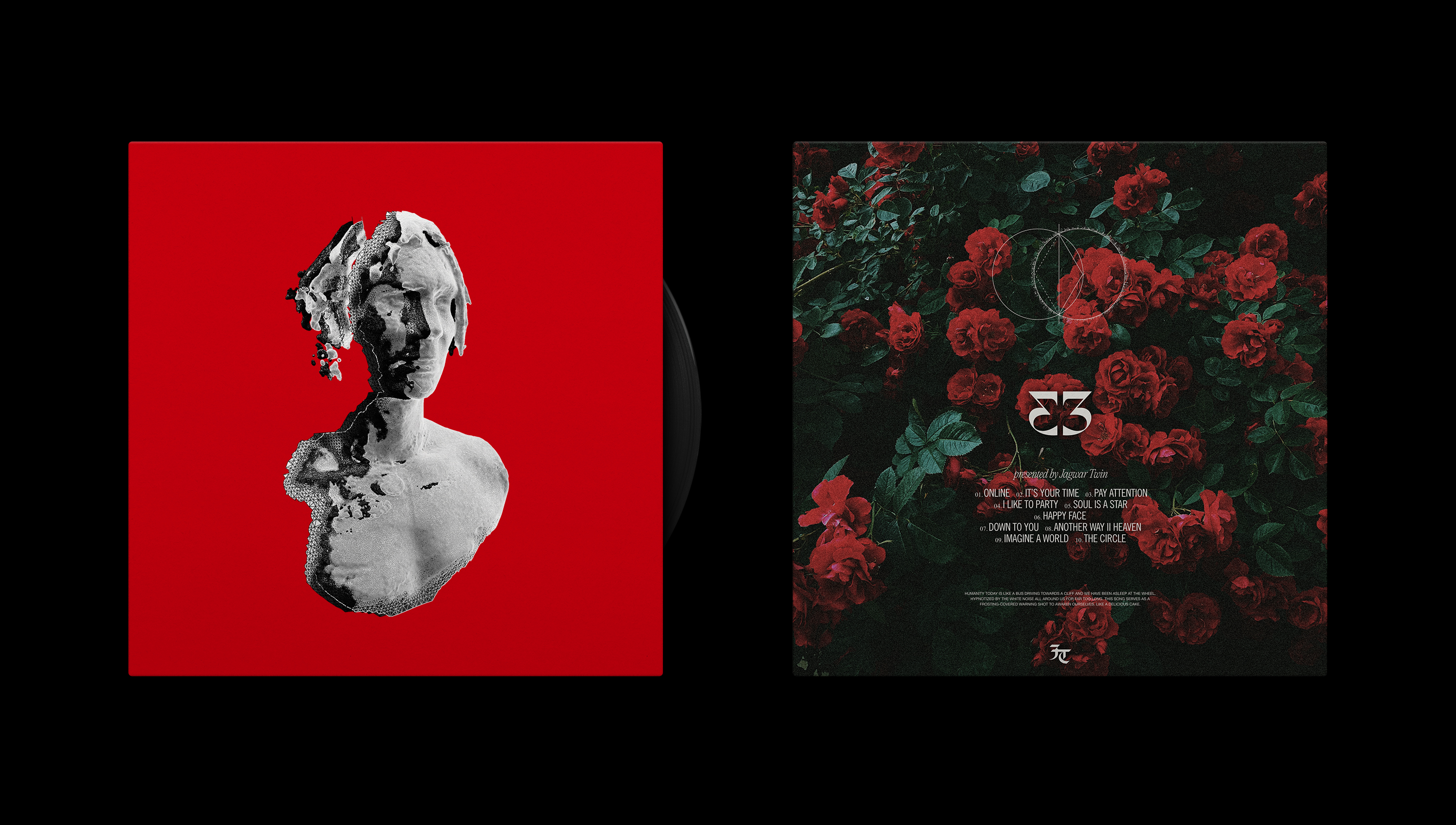 Everything that came before each of us is already inside of us, encoded in our DNA waiting to be discovered. On the flip side, everything we do here on the planet alters our DNA and therefore impacts collective consciousness for generations to come. There are 33 degrees of awakening consciousness already in you. Reclaim your crown! As an artist, Jagwar Twin has often felt at war with the concept of curating his digital self and the seeming need to be an influencer in this ever-connected digital world we all exist in. Many of the songs on 33 play with this duality and we wanted the art direction to directly reference both the pull between the digital and analog worlds, but also the concept of digital curation.